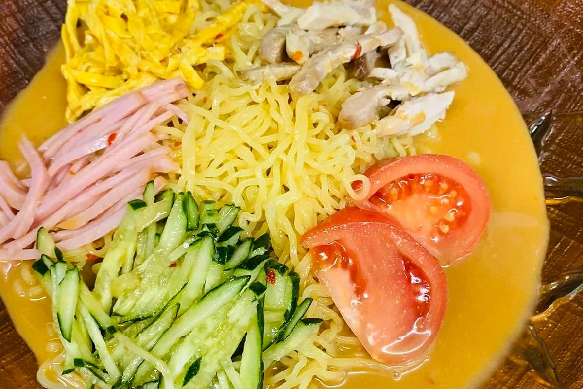 雲雀特製冷やし中華のタレは甘酸っぱく、麵によく絡みのど越しも爽やか。春から夏にかけてぴったりの逸品です。