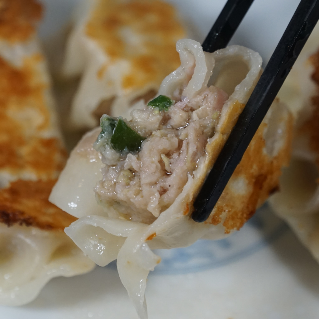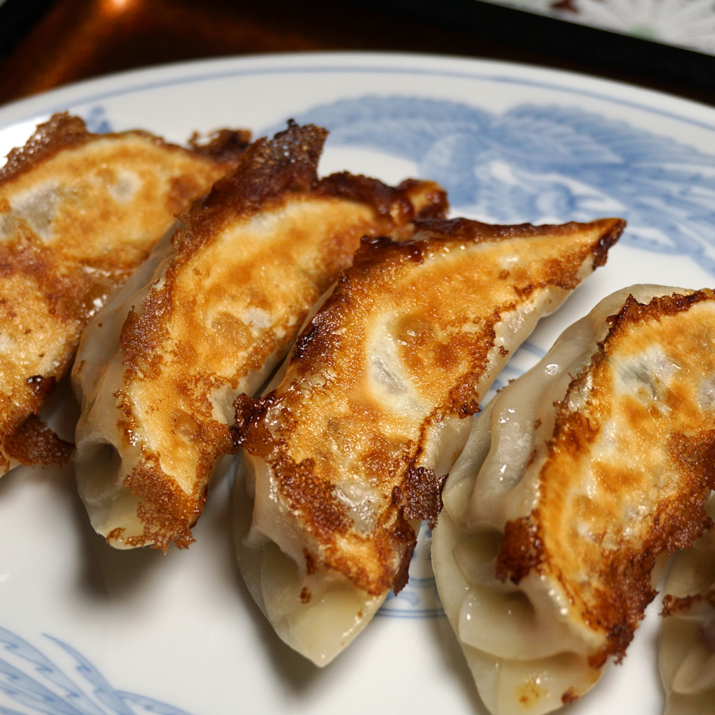 宮城県産豚肉を使用した特注の粗引き肉に地元産の野菜を加えて焼き上がった餃子は甘みがあり、小籠包の様に肉汁が口に広がるジューシーな餃子です。