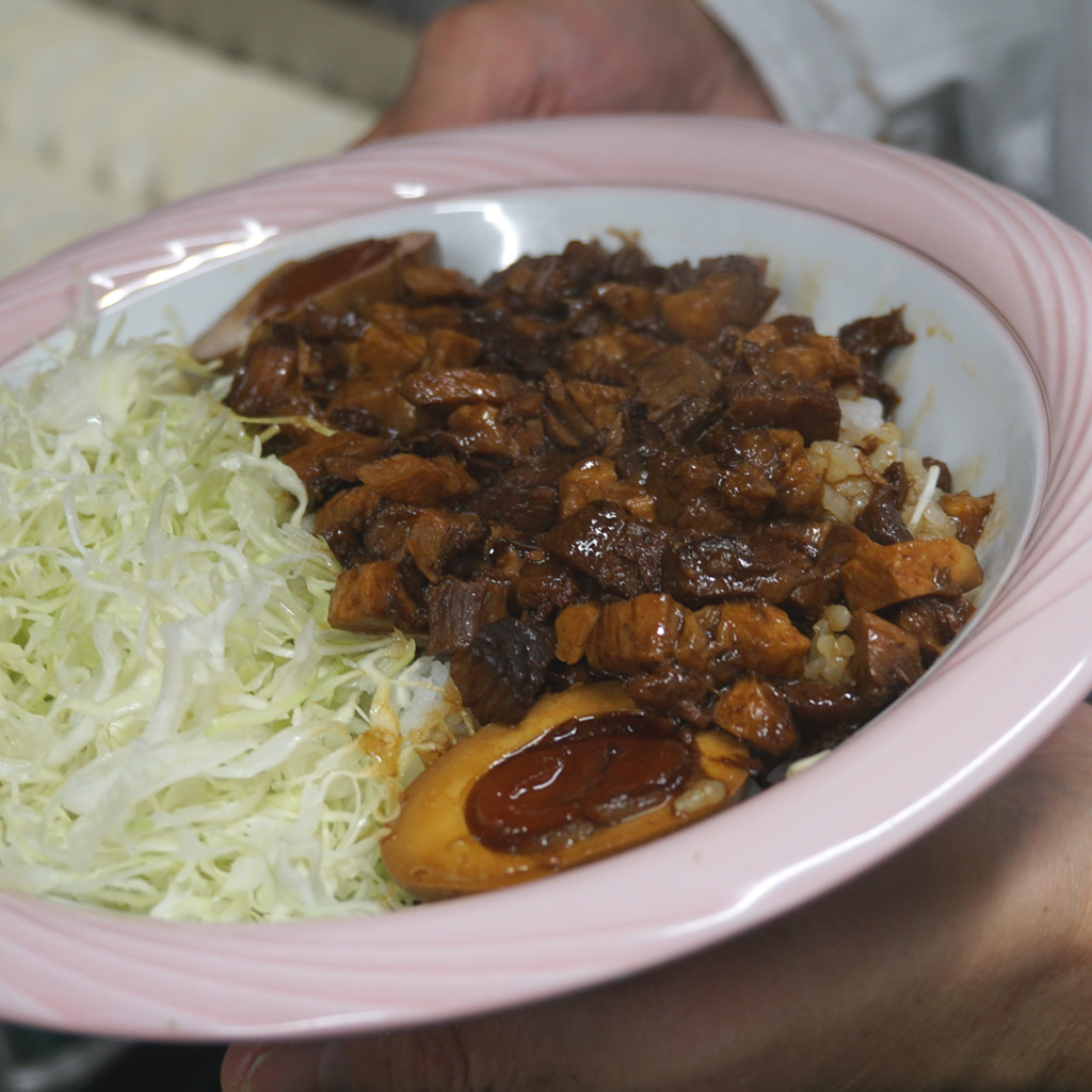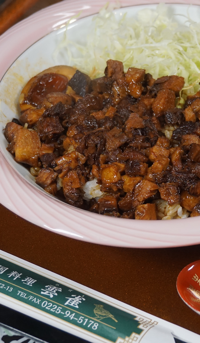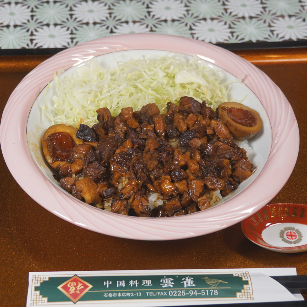 雲雀のルーロー飯は宮城県産の素材にこだわり、より日本人に好まれる味に仕上げております。お店では煮卵、キャベツを添えて提供しております。ご家庭でもお好みの野菜や漬物、目玉焼きや煮卵などを添えてお召上がりただくのをお勧めします。