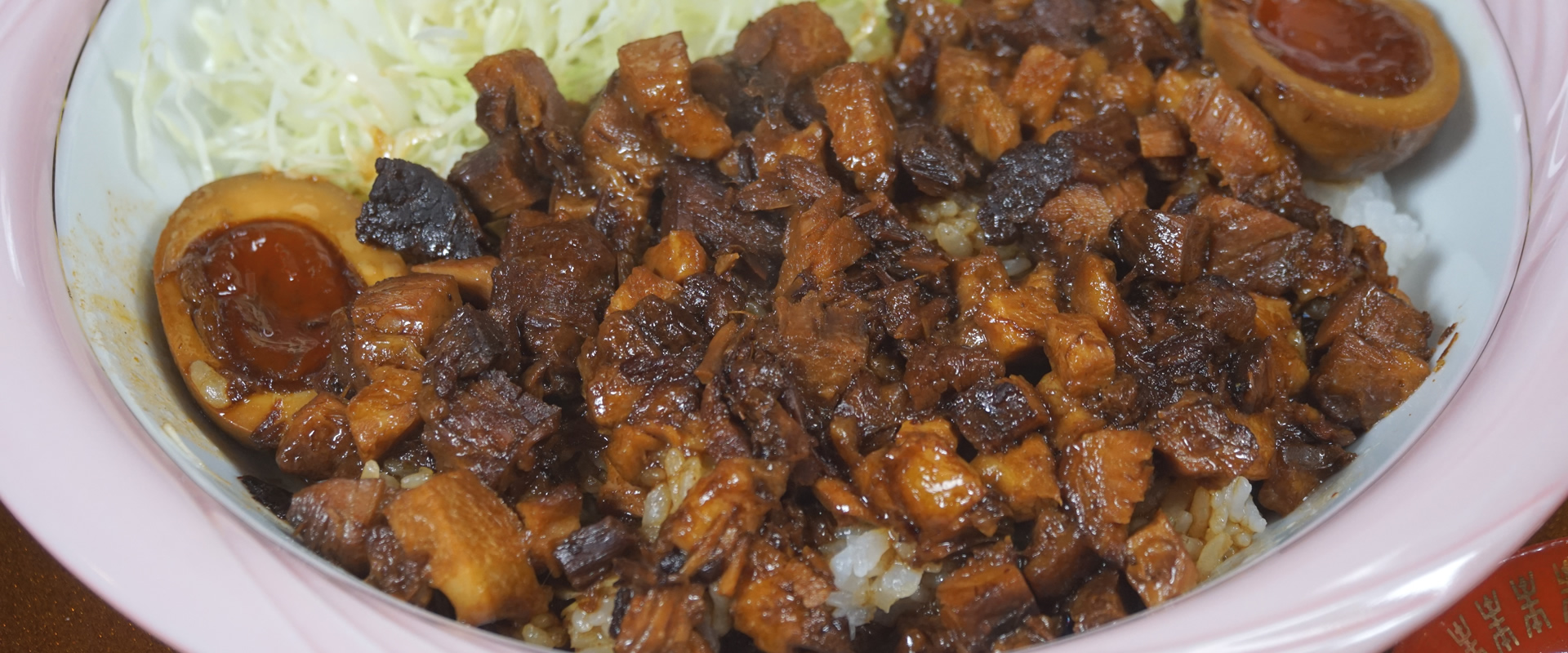 白いご飯と相性抜群!とろとろの豚肉と甘辛味がたまらない、八角などのスパイスが香るルーロー飯。