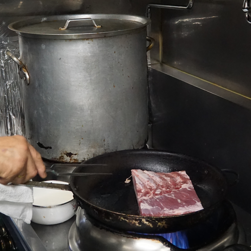時間をかけてじっくりと煮込んだ豚肉はとろけるように柔らかく、味わい深い逸品です。